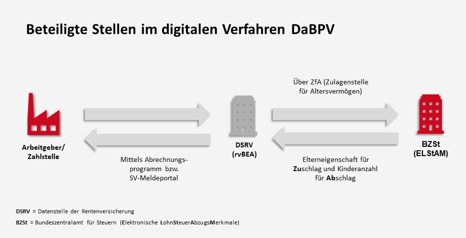 Das Bundeszentralamt für Steuern (BZSt), der Spitzenverband Bund der Pflegekassen und die Deutsche Rentenversicherung Bund haben die Gemeinsamen Grundsätze vom 29. August 2024 aufgestellt. Danach gilt (Ziffer 1.2): „Die Teilnahme am DaBPV ist für alle beitragsabführenden Stellen, die zur Berücksichtigung von Zu- und Abschlägen in der sozialen Pflegeversicherung verpflichtet sind, obligatorisch.“ Die Gemeinsamen Grundsätze (sowie nach deren Finalisierung später auch die von der ZfA aufzustellende Verfahrensbeschreibung) können wertvolle Unterstützung beim Start in das neue Verfahren leisten.